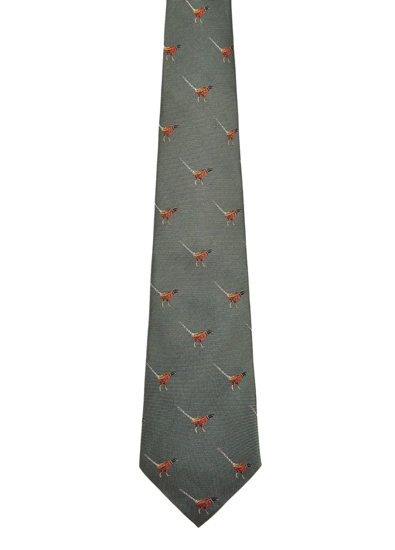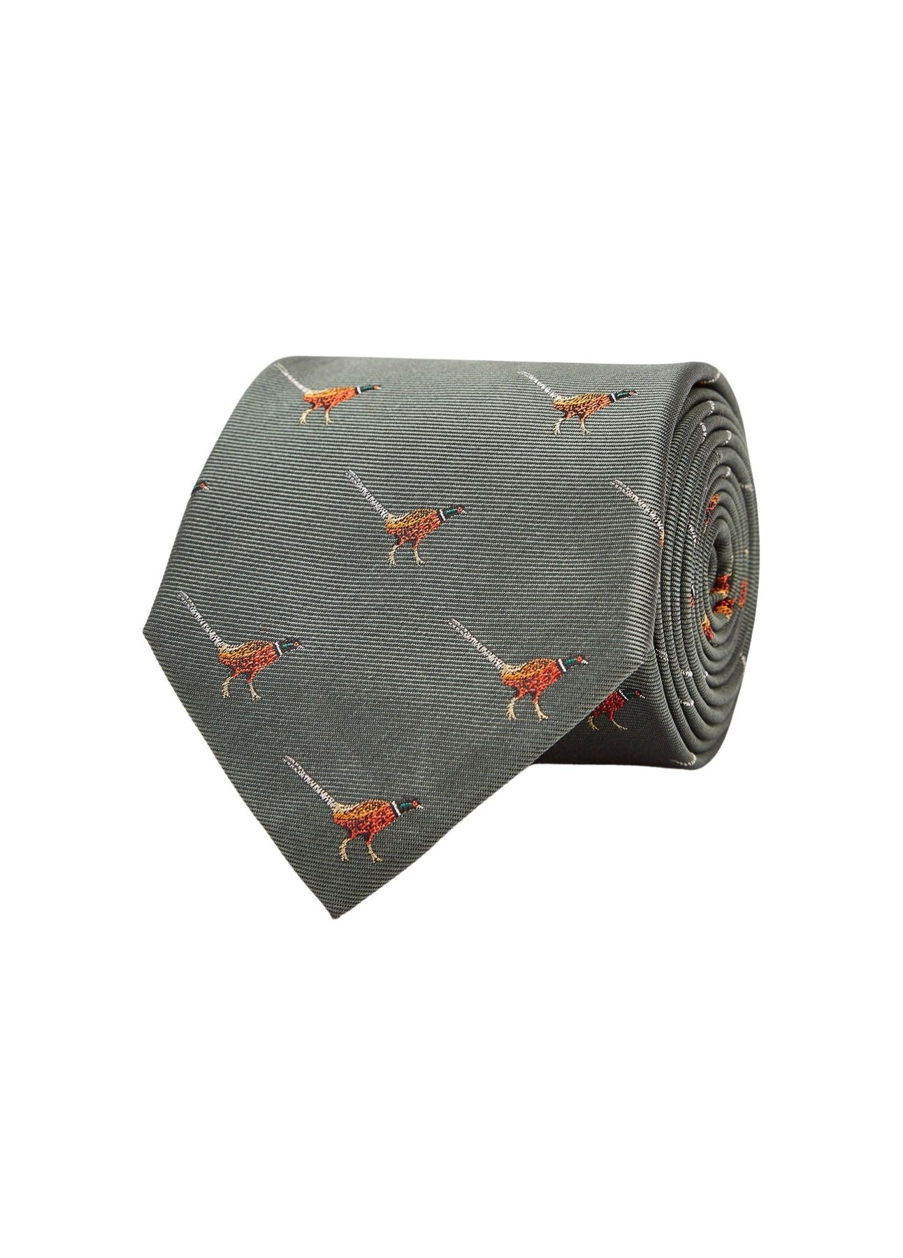 Slipset er mønstret med fasan-motiv, som tilføjer karakter og et klassisk, naturinspireret præg uden at være overdrevet. -