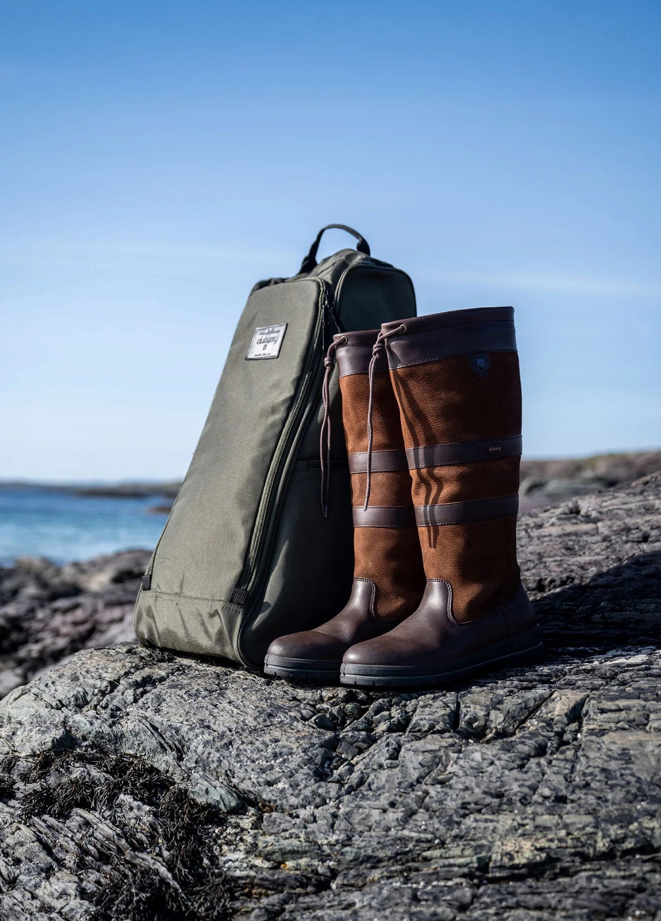 Opbevar dine støvler sikkert og stilfuldt med Westcourt PVC Boot Bag i oliven. Tasken er designet til at beskytte dine høje støvler og gøre transporten enkel, uanset om du er på vej til stalden, jagten eller en dag ude i naturen.