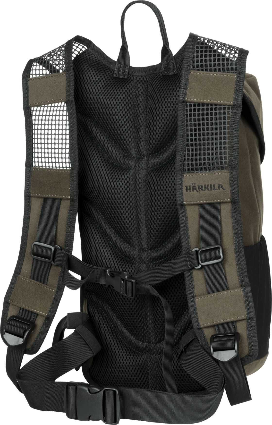 - Gummi mesh skulderstropper og webbing stropper på tværs af brystet for at sikre placering