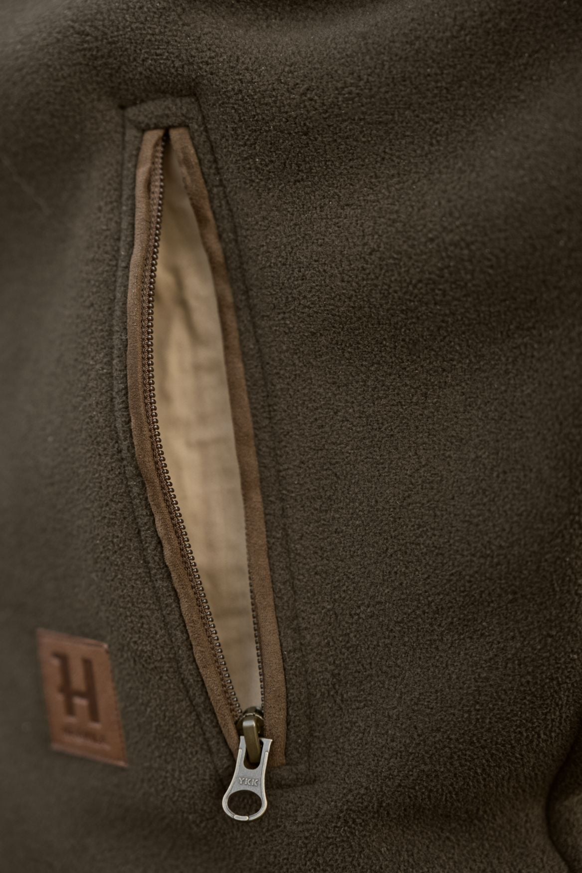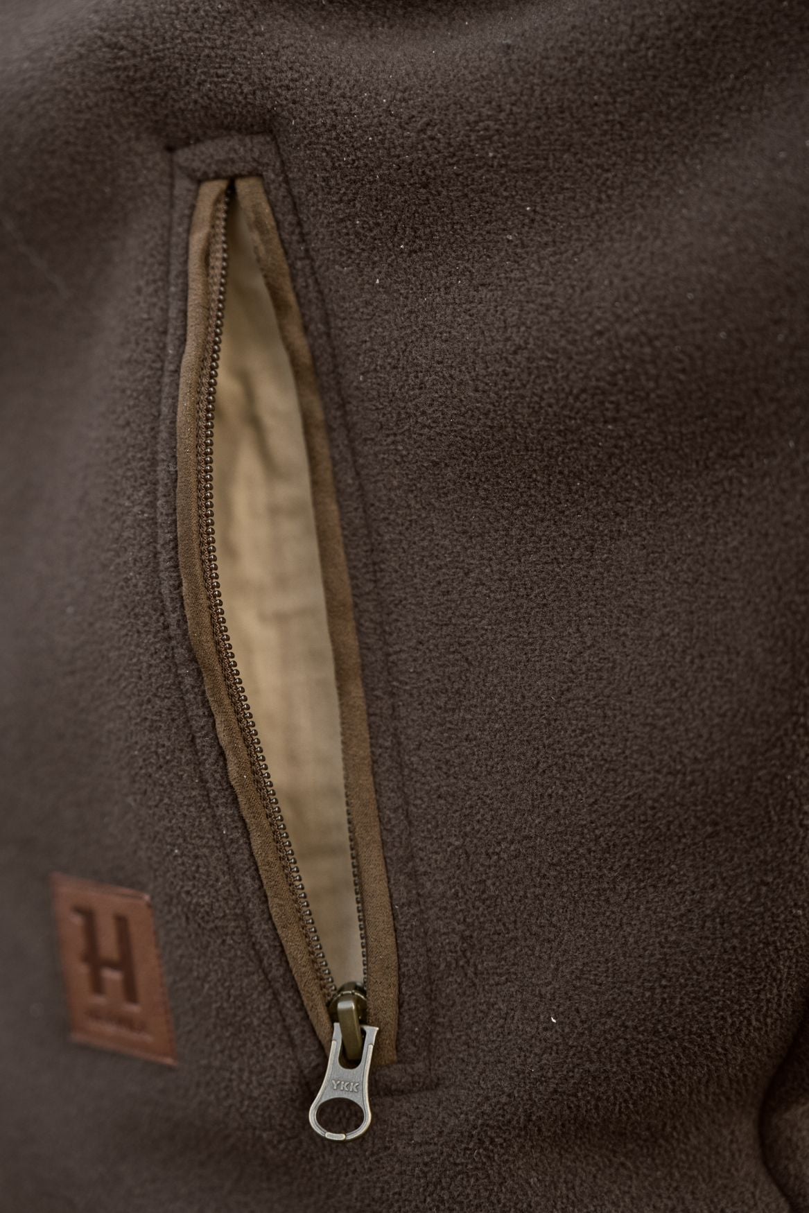 Den har to lynlåslommer foran og en lynlåslomme på brystet til sikker opbevaring. Forstærkninger og kanter i mikroruskind styrker både holdbarhed og udtryk.