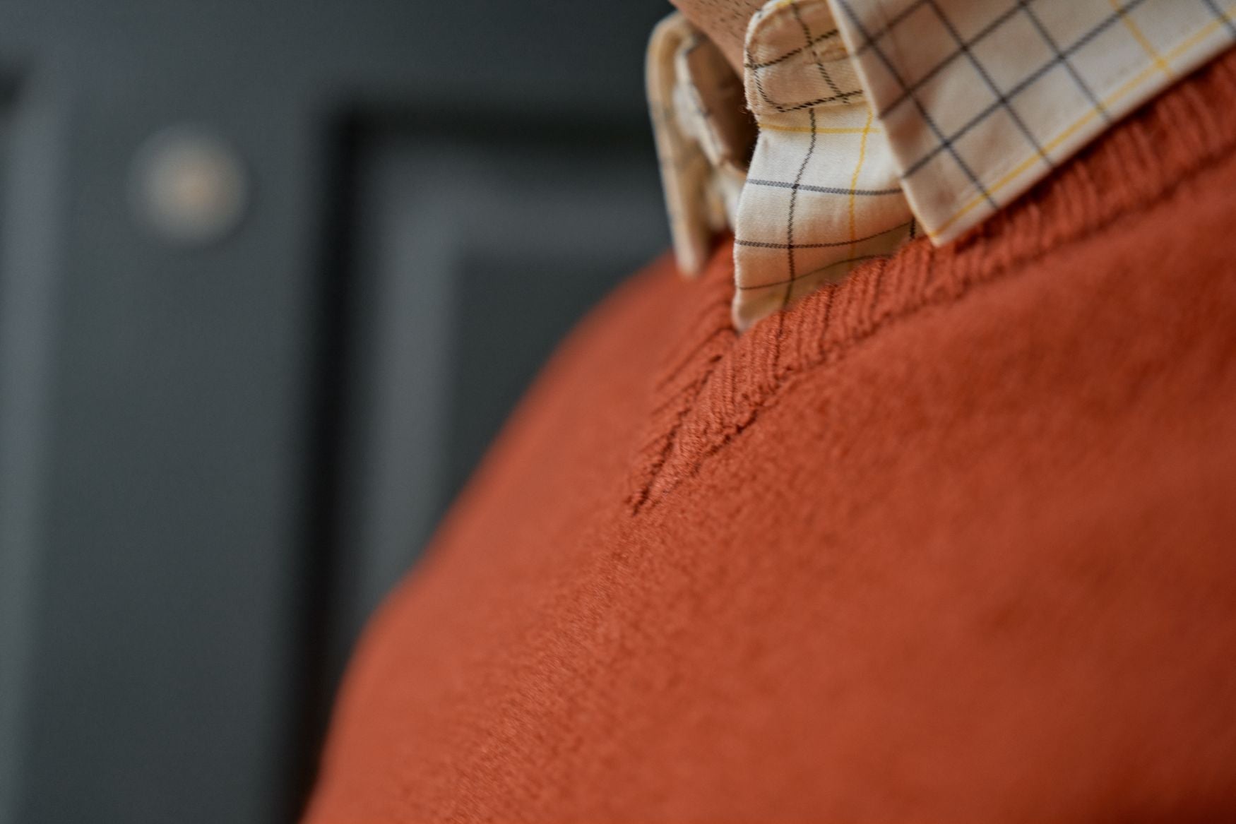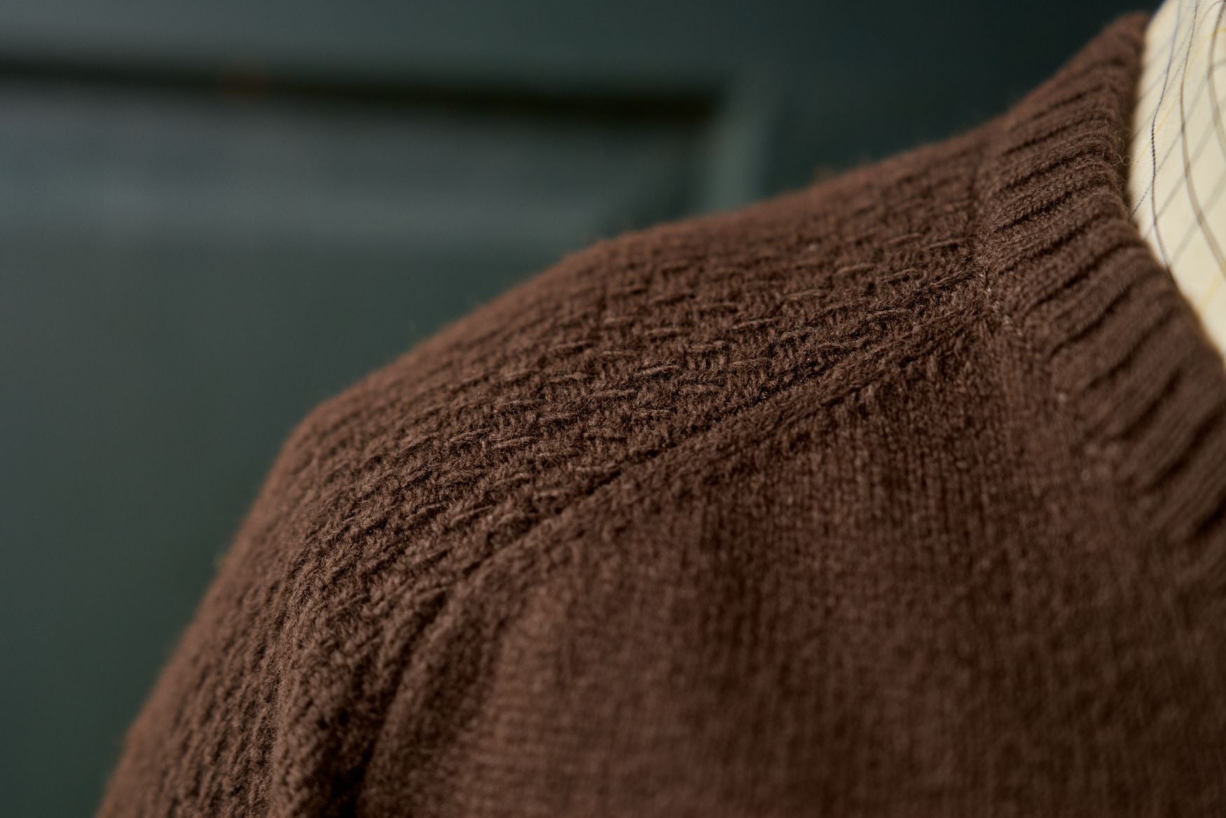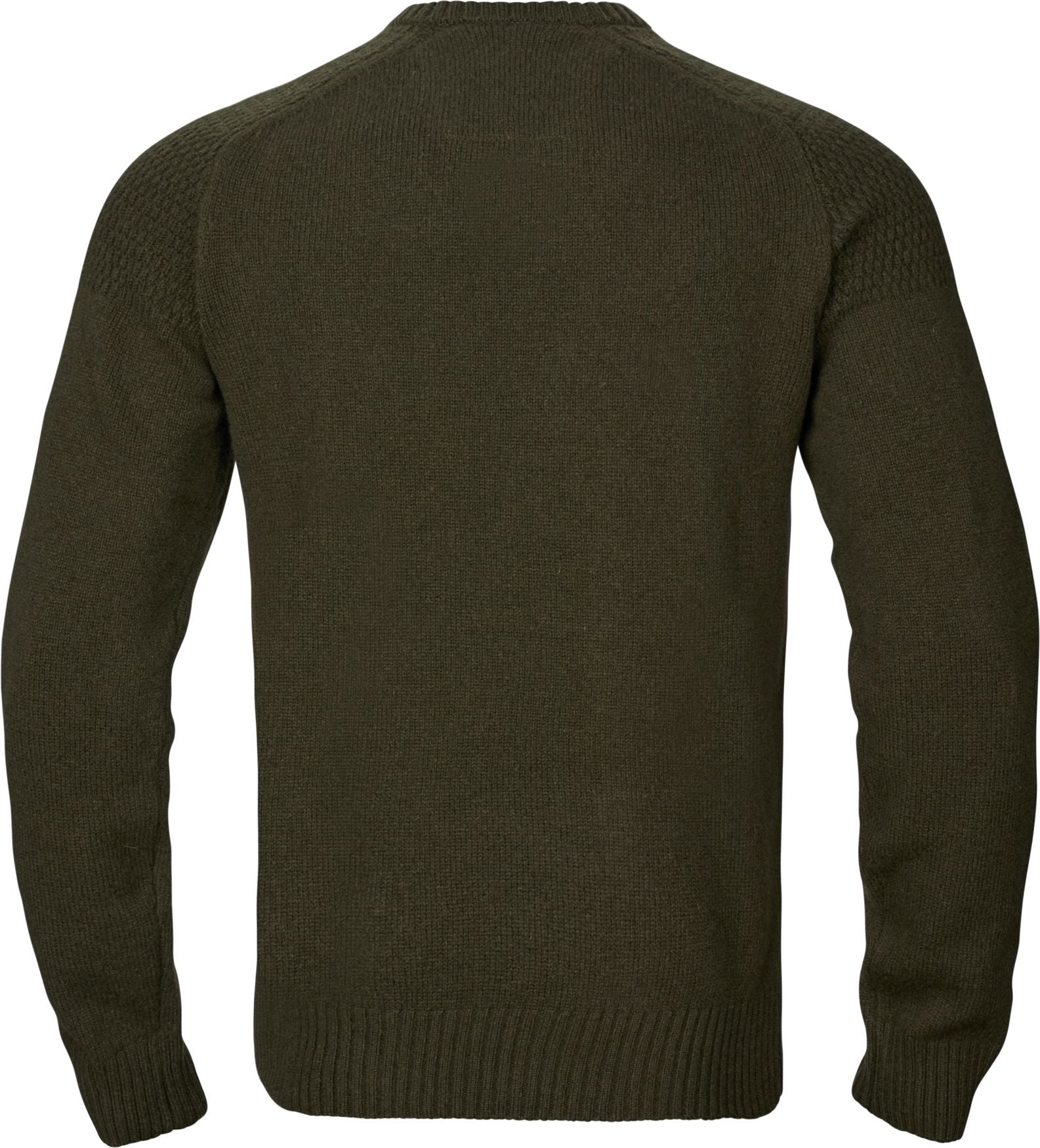 • Raglanærmer og kontraststrikket mønster på skuldrene