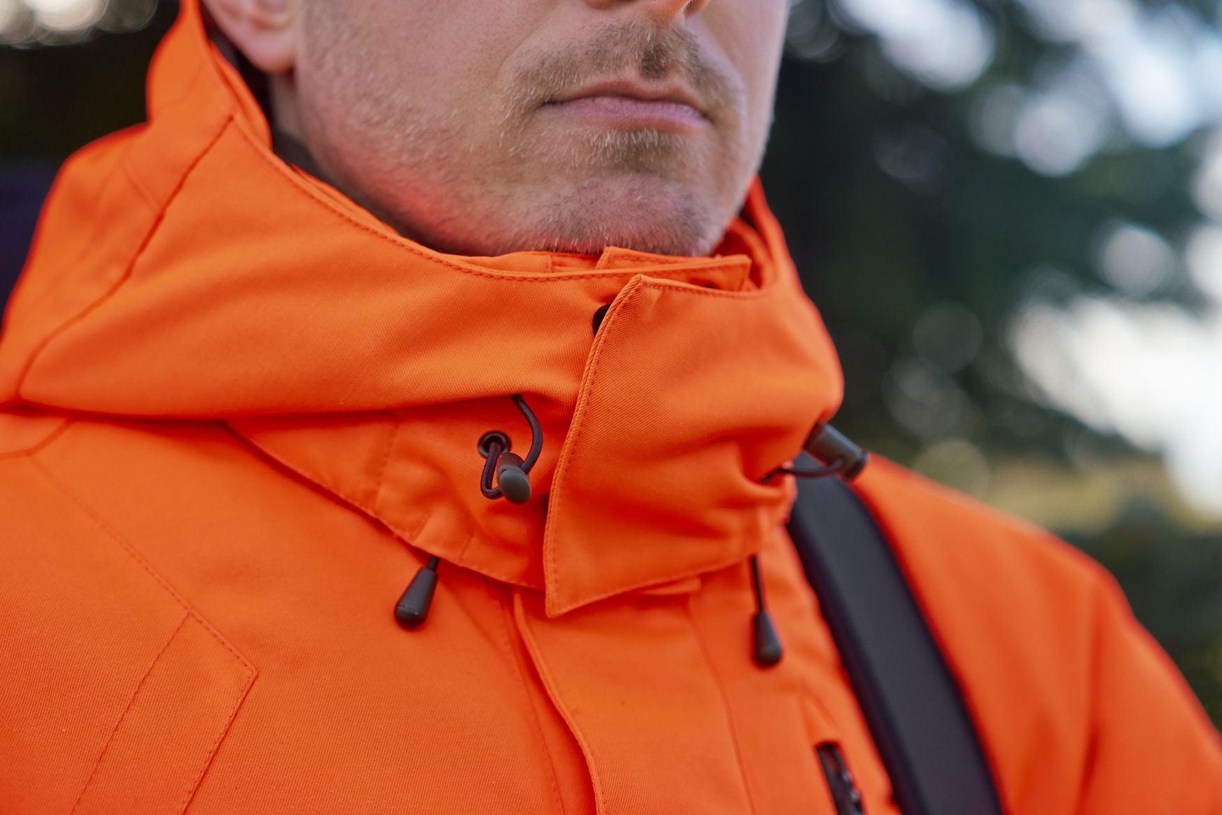 Vores Wildboar Pro HWS Insulated Solid Jakke er udviklet med fokus på sikkerhed og komfort i alle detaljer. Jakken er PPE-certificeret (Personal Protection Equipment) og lever op til de skærpede sikkerhedsstandarder, mens den holder dig synlig og beskyttet under krævende drivjagter.