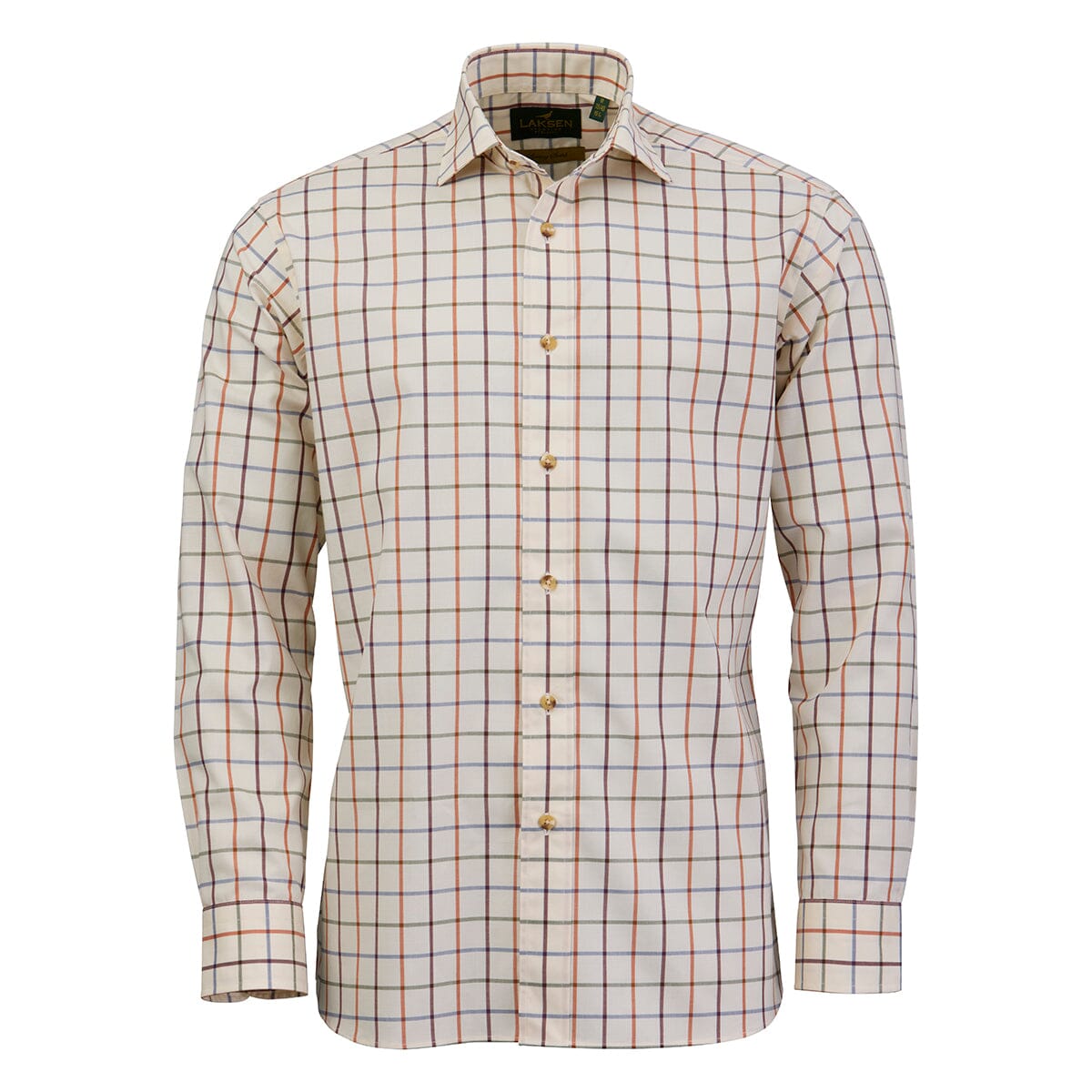 Fit: Sporting fitColor/check: Olve/ Burnt Orange / Bordeaux/Corn blueOuter fabric: 98% Cotton / 2% LycraCollar: Sporting collarCuffs: Adjustable width & suitable for cufflinks ENG:Light and comfortable sporting stretch shirt. Classic check shirt with sporting collar, single chest pocket, adjustable cuffs, suitable for cufflinks. DK:Let og komfortabel skjorte i bomuld med stretch. Sporting krave, enkelt brystlomme og med justerbare manchetter forberedt til brug af manchetknapper