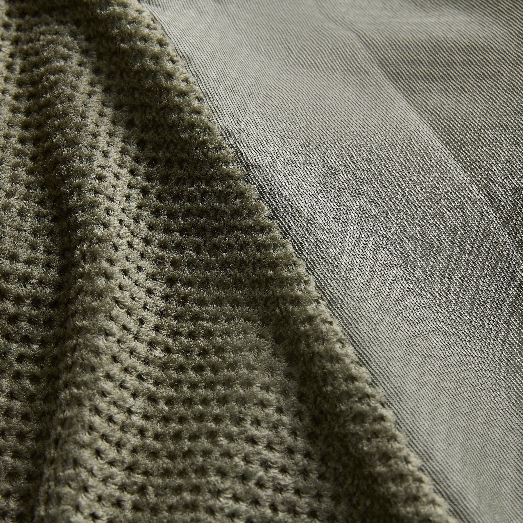 Jakken er fremstillet med Raptor Flex dobbeltvævet softshell-stof bestående af 88 % genanvendt nylon og 12 % elastan. Den er behandlet med en PFC-fri DWR-belægning, der tilbyder vindafvisende og vandafvisende egenskaber. Indvendigt er jakken foret med Octa fleece, et 100 % genanvendt polyesterstof med en innovativ fiberstruktur, der fremragende håndterer varme og fugtighed. -