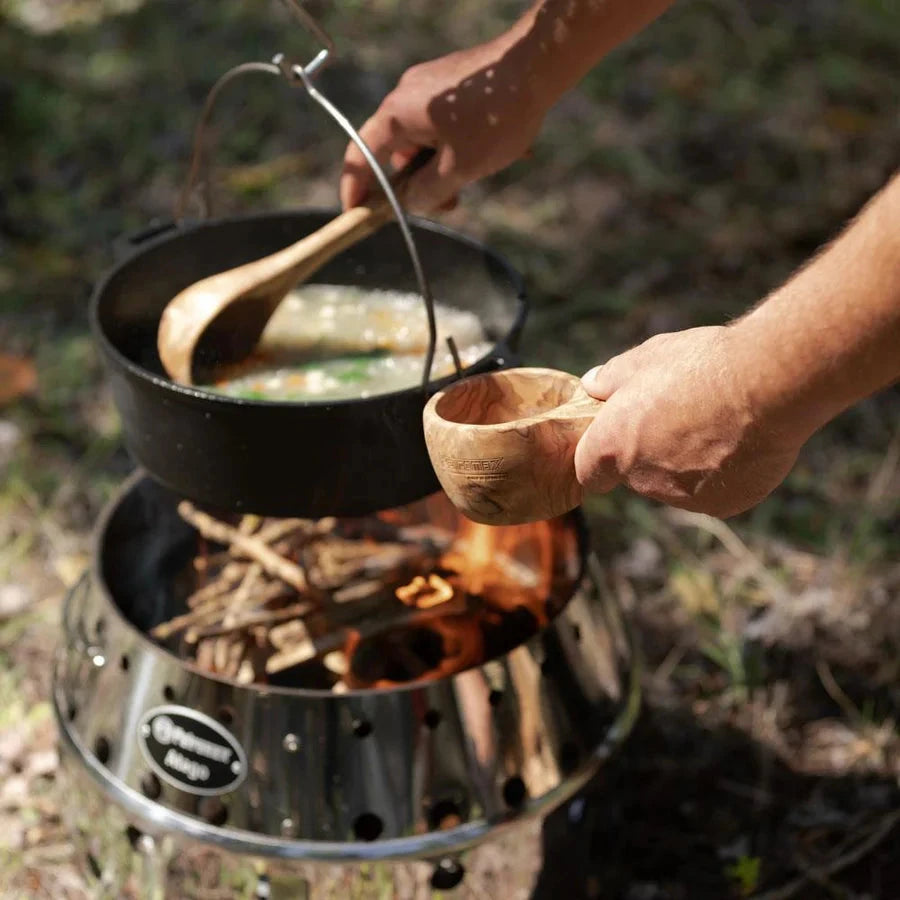 Med Petromax oliventræsskeen kan du let fordele din bålmad i emaljeskåle til den sultne lejr. Skeen er perfekt til både smagsprøver og præcis opmåling – med en kapacitet på 60 ml har du plads til en god portion eventyr. Det lange skaft gør det desuden nemt at øse vand direkte fra en bæk. Skeen ligger godt i hånden og er et naturligt redskab i dit udendørskøkken.