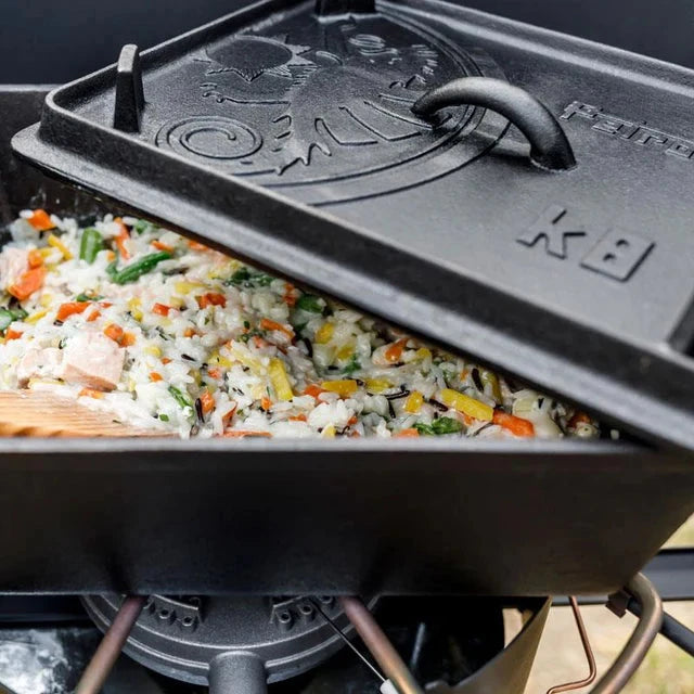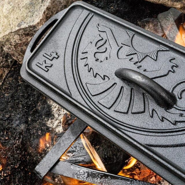 Brødformen er fremstillet af støbejern, hvilket sikrer fremragende varmeledning og varmeopbevaring. Uanset om du bruger den over åben ild eller placerer briketter på låget, opnår du en jævn varmefordeling – både i ovnen derhjemme og i udekøkkenet. Takket være den forbehandlede overflade (seasoned finish) er formen klar til brug med det samme.