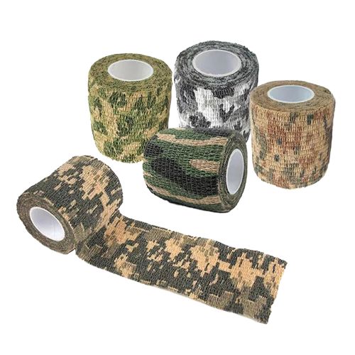 Maskér udstyr, våben eller grej effektivt med dette selvklæbende camouflagebånd, nu tilgængeligt som enkeltstyk. Båndet er 4,5 cm bredt og 5 m langt, fleksibelt og nemt at forme omkring forskellige overflader uden limrester.