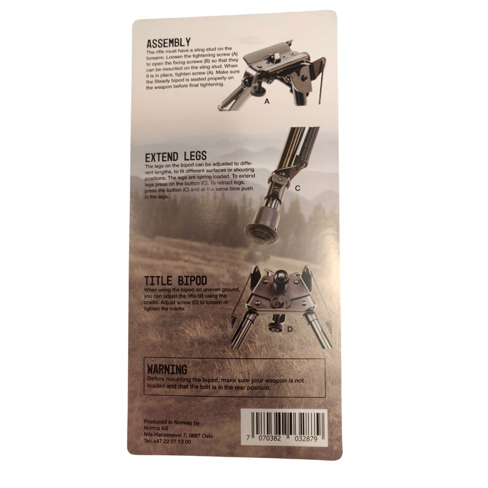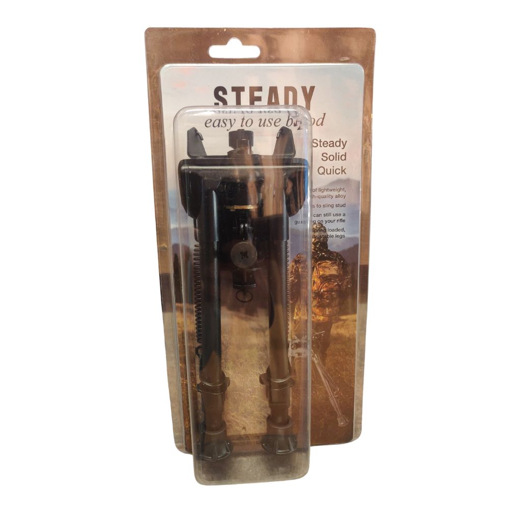 Steady Bipod er udviklet til jægere og skytter, der ønsker maksimal stabilitet og fleksibilitet under skydning. Den monteres nemt direkte på riflens remstuds og giver et solidt skydeunderlag, uanset terræn.