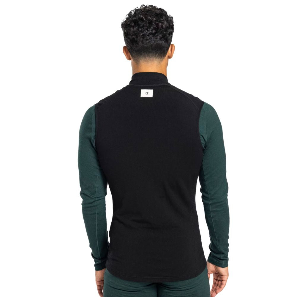 En alsidig og funktionel vest i 96 % ZQRX merinould og 4 % elastan, designet til både udendørs eventyr og afslapning i kolde omgivelser.